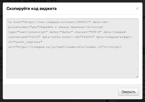 Если что-то отображается или работает не так, возможно, вы неправильно вставили код или ваш сайт не поддерживает технологии, на которых работает наш виджет. Напишите нам об этом на support@timepad.ru.